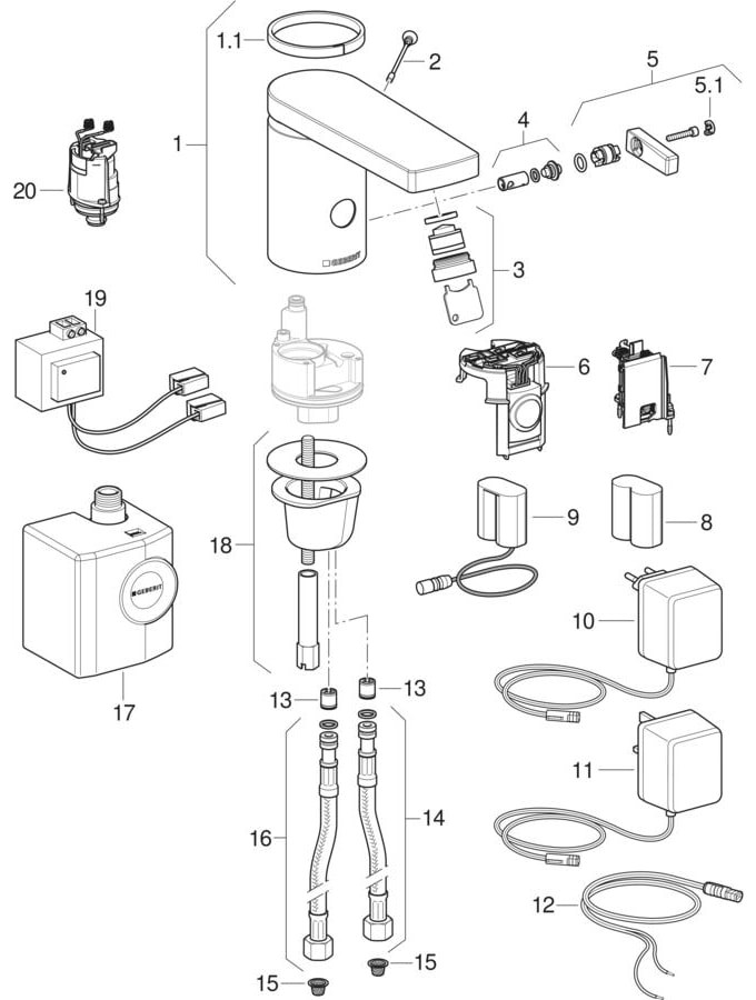 Geberit Infrarot-Waschtisch-Armatur Typ 186 Generator, ohne Mischer, hochglanz-verchromt