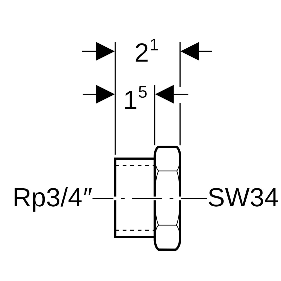 Geberit Kappe Rp 3/4, mit IG, für Verteiler, Messing GE612481001
