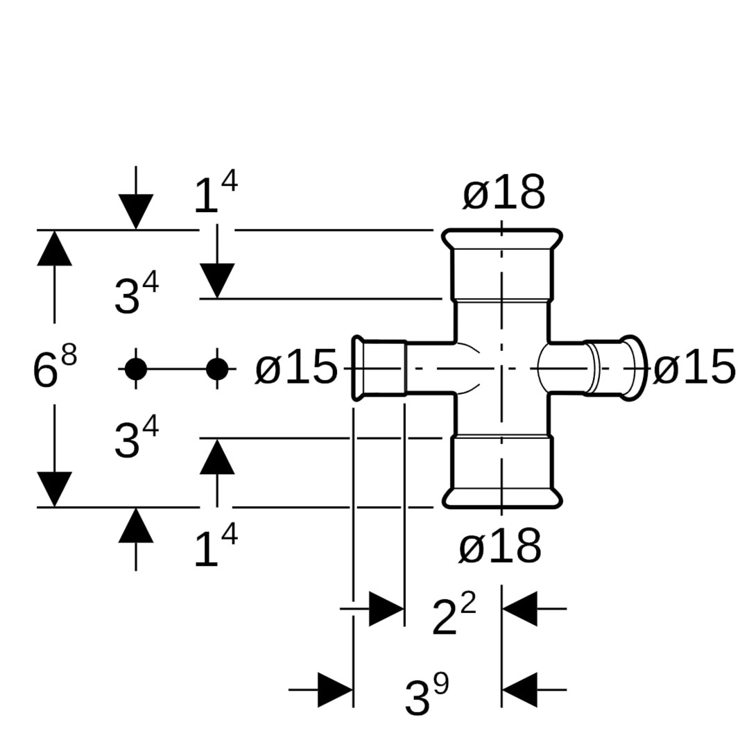 Geberit Kreuzstück Mapress 18 x 15 mm, 30°, reduziert, Kupfer
