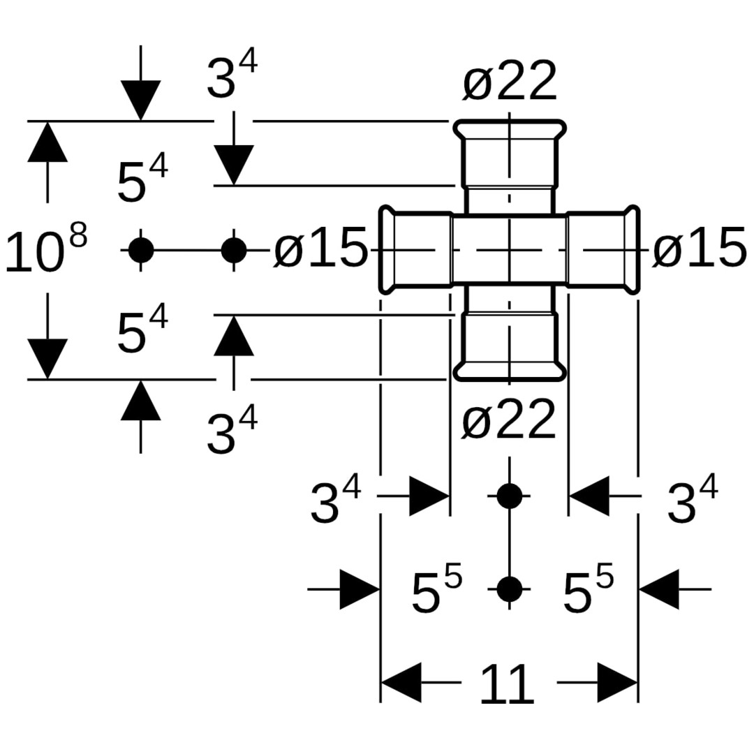 Geberit Kreuzstück Mapress reduziert, abgesetzt, Kupfer, Ø 22 x 15 mm