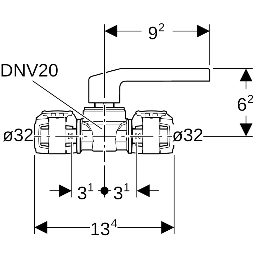 Geberit Kugelhahn FlowFit Ø 32 mm, 12,8 cm, mit Betätigungshebel GE619853001