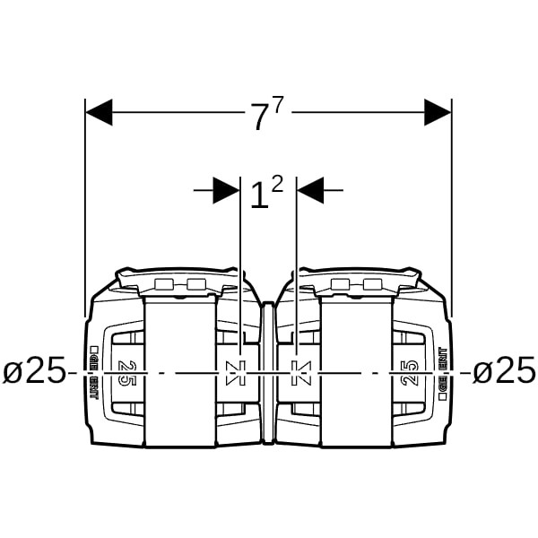 | Rohraußendurchmesser Anschluss 1 | 25 mm |
