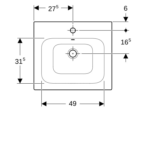 Geberit Möbel-Waschtisch Renova Plan 55 x 48 cm, weiß, mit Hahnloch, mit Überlauf