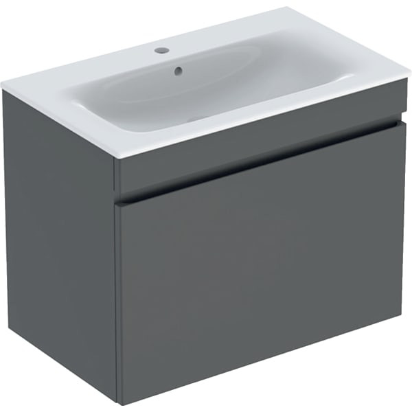 Geberit Möbel-Waschtisch-Set Renova Plan 80x62,2x48cm, Korpus/Front lava matt/Waschtisch weiß GE501916JK1