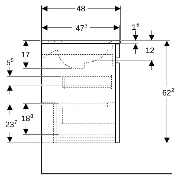 Geberit Möbel-Waschtisch-Set Renova Plan 80x62,2x48cm, Korpus/Front lava matt/Waschtisch weiß GE501916JK1