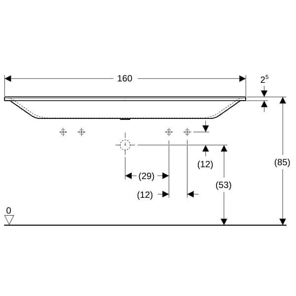 Geberit Möbel-Waschtisch Xeno² 160x48cm, ohne Überlauf, weiß/matt, Hahnloch links und rechts