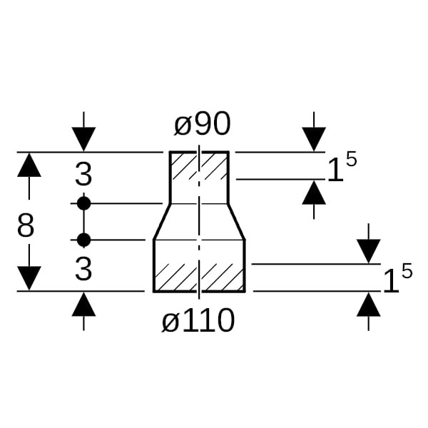 | Rohraußendurchmesser Anschluss 1 | 110 mm |