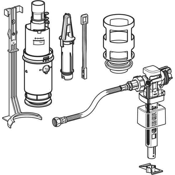 für Typ 110.800 UP-Spülkasten, Heberglocke, Niederhalter, Bassin, Typ 383 Füllventil, Panzerschlauch 3/8"