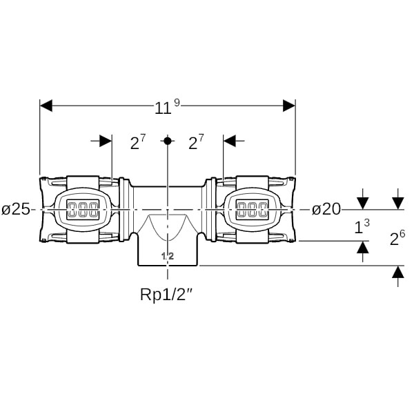 25 mm x Rp 1/2 x 25 mm
