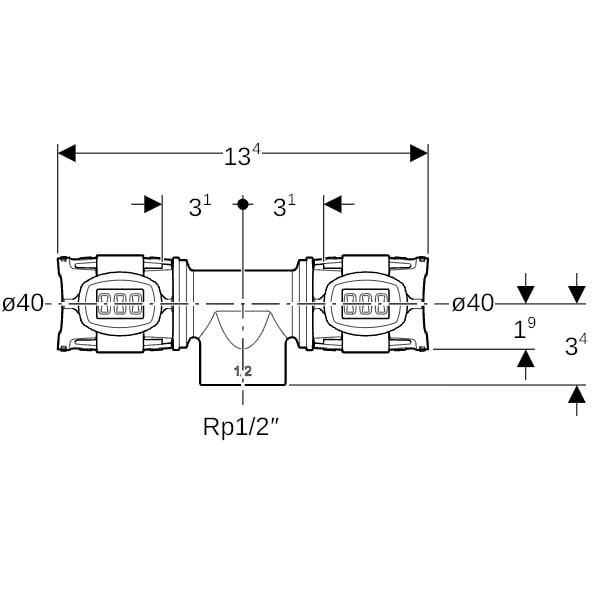 | Größe | DN 32 x Rp 1/2 x DN 32 |