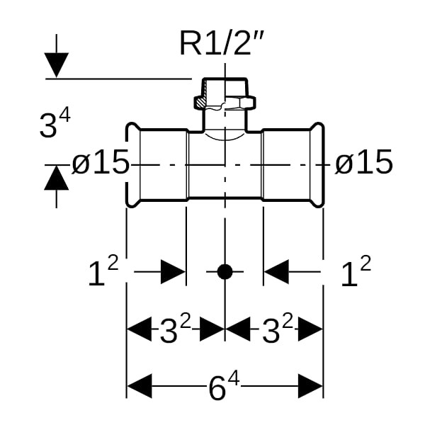 Geberit T-Stück Mapress Ø 15 mm x R 3/8, mit Außengewinde, Edelstahl GE31401