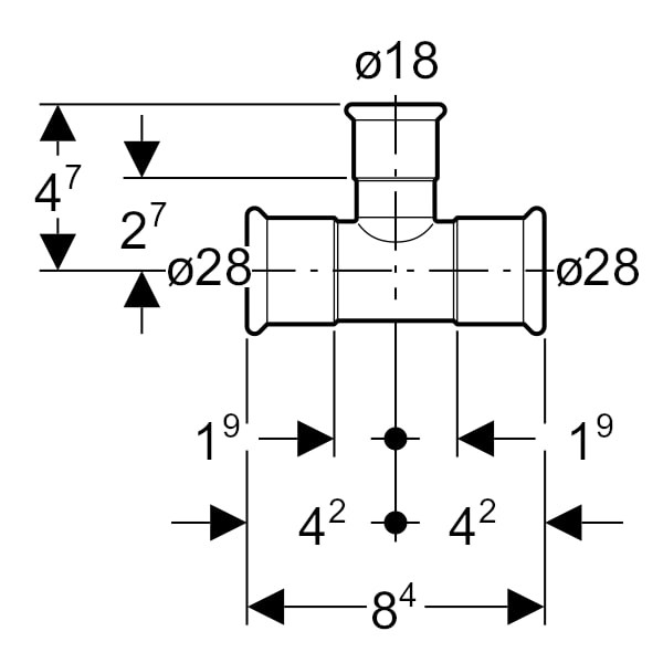Geberit T-Stück Mapress C-Stahl Ø 28 x 18 x 28 mm, reduziert