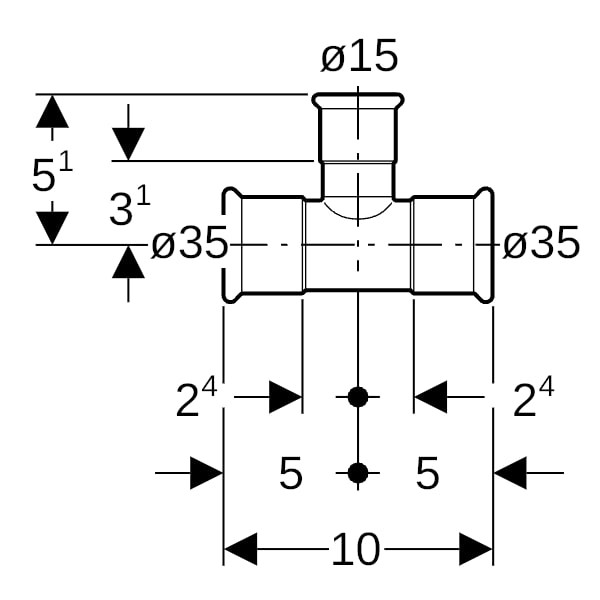 Geberit T-Stück Mapress C-Stahl Ø 35 x 15 x 35 mm, reduziert