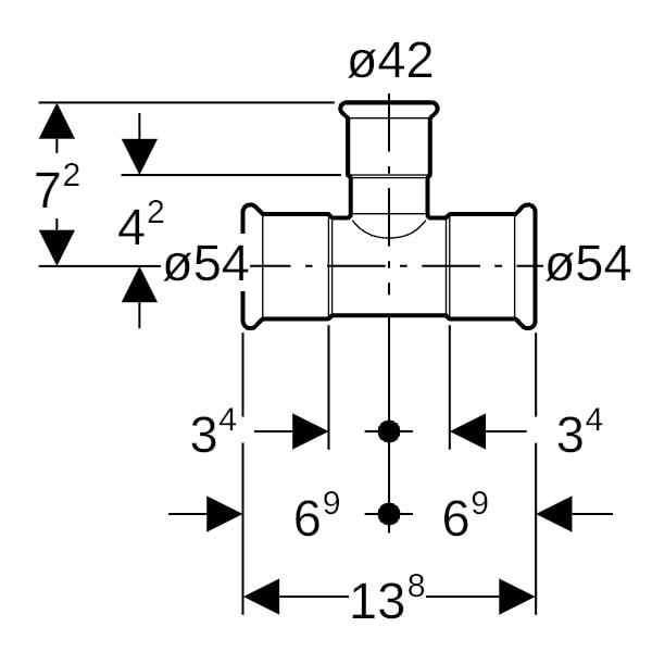 Geberit T-Stück Mapress C-Stahl Ø 54 x 42 x 54 mm, reduziert