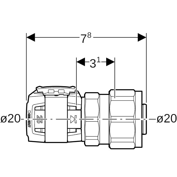 | Größe | DN 15, d 20/20 mm |