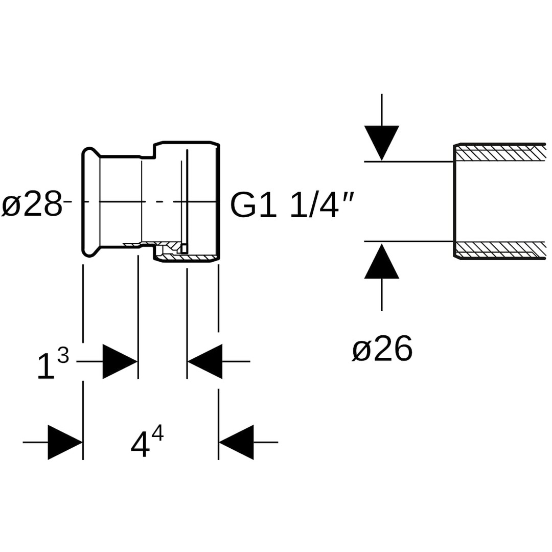 Geberit Übergang Mapress Ø 28 mm x G 1 1/4, mit Überwurfmutter, Edelstahl