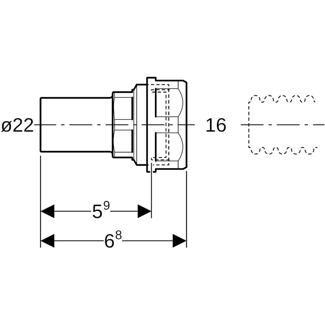Geberit Übergang Mapress DN 16 x 22 mm, mit Klemmringverschraubung für Wellrohre, NPW, Messing GE22423
