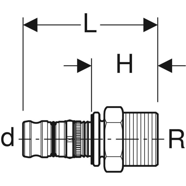 Geberit Übergang Mepla Ø 20 mm x R 1/2, mit Außengewinde, PVDF GE622535005