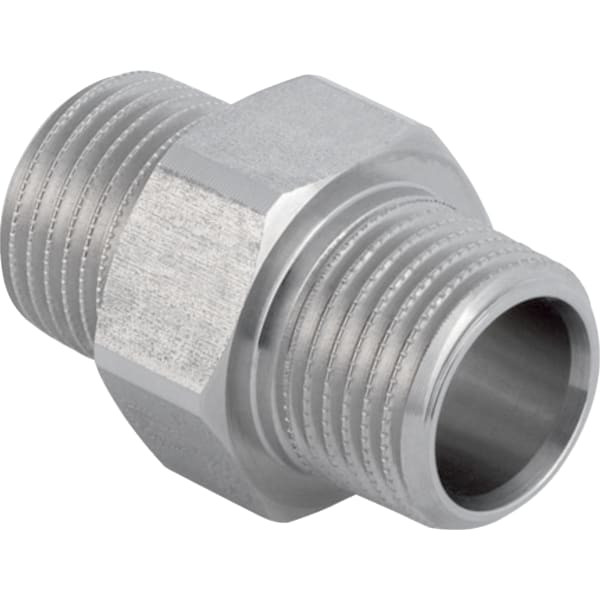 Außengewinde MF 1/2 MasterFix- und MeplaFix-fähig, Außengewinde für Anschluss von Adapter MeplaFix, Anschluss MF 1/2 mit blauer Schutzkappe, CrNiMo-Stahl 1.4401 (DIN EN 10088), für Haustechnik, Industrie und Schiffbau