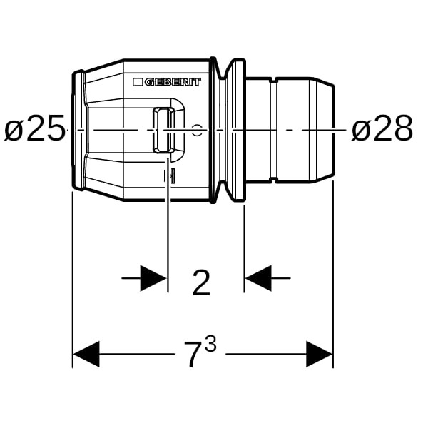 | Rohraußendurchmesser Anschluss 2 | 28 mm |