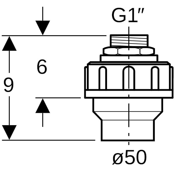Geberit Übergangsstutzen G 1, DN 50, mit AG und Verschraubung, PE-HD, schwarz GE152978001