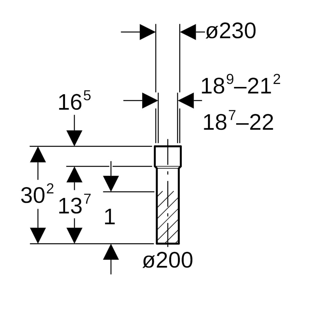 | Rohraußendurchmesser Anschluss 1 | 200 mm |