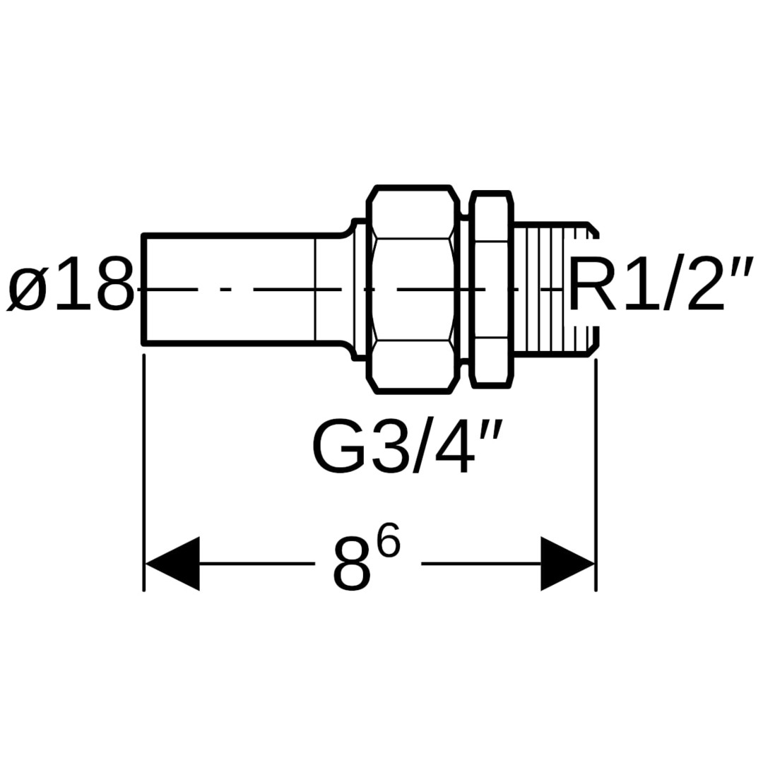 Geberit Übergangsverschraubung Mapress Ø 18 mm x R 1/2, mit Außengewinde und Einschubende, Edelstahl GE35402