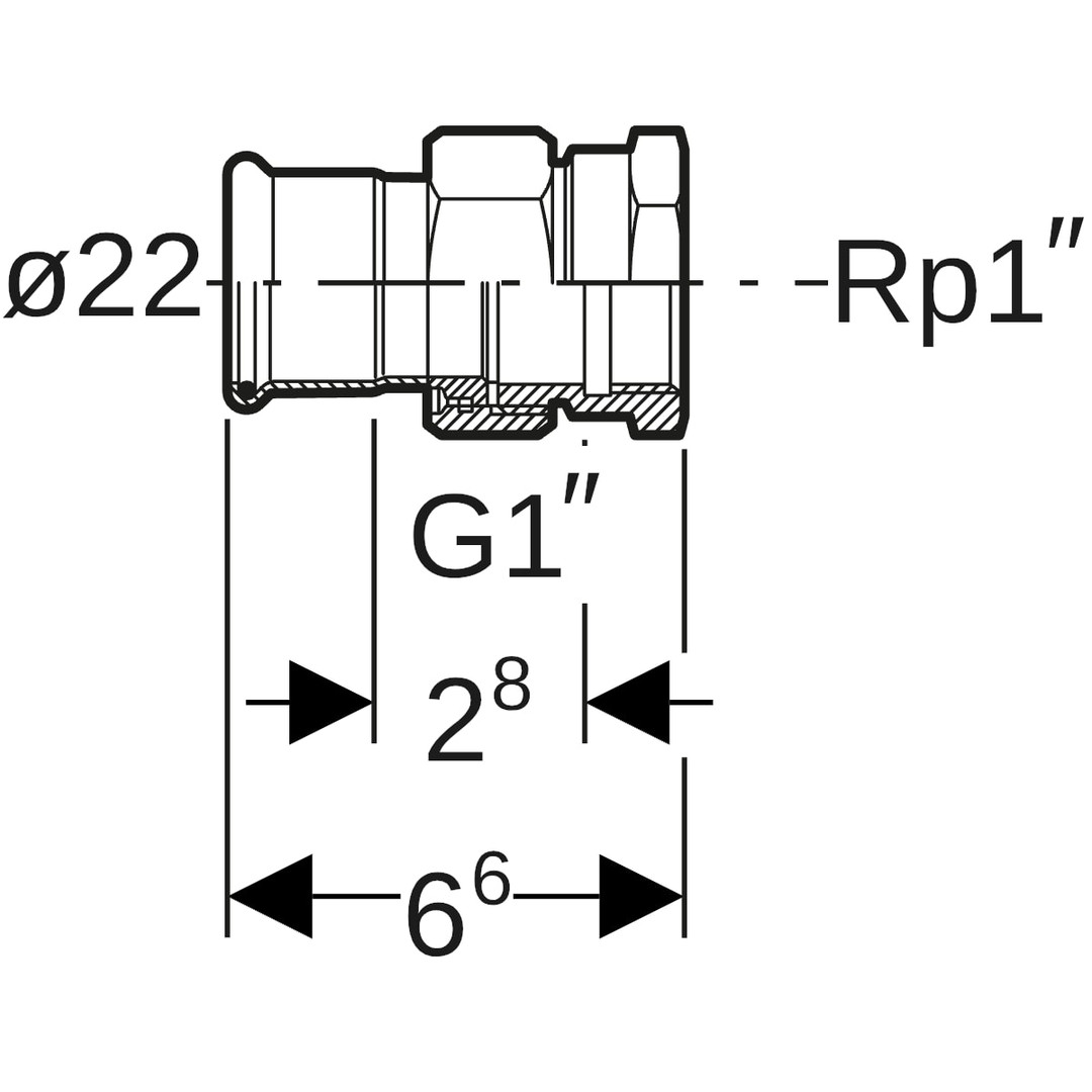 Geberit Übergangsverschraubung Mapress Ø 22 mm x Rp 1, Kupfer, flachdichtend, mit Innengewinde, Rotguss