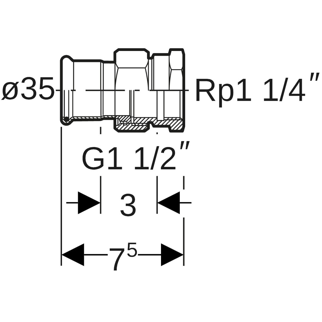 Geberit Übergangsverschraubung Mapress Ø 35 mm x Rp 1 1/4, Kupfer, flachdichtend, mit Innengewinde, Rotguss