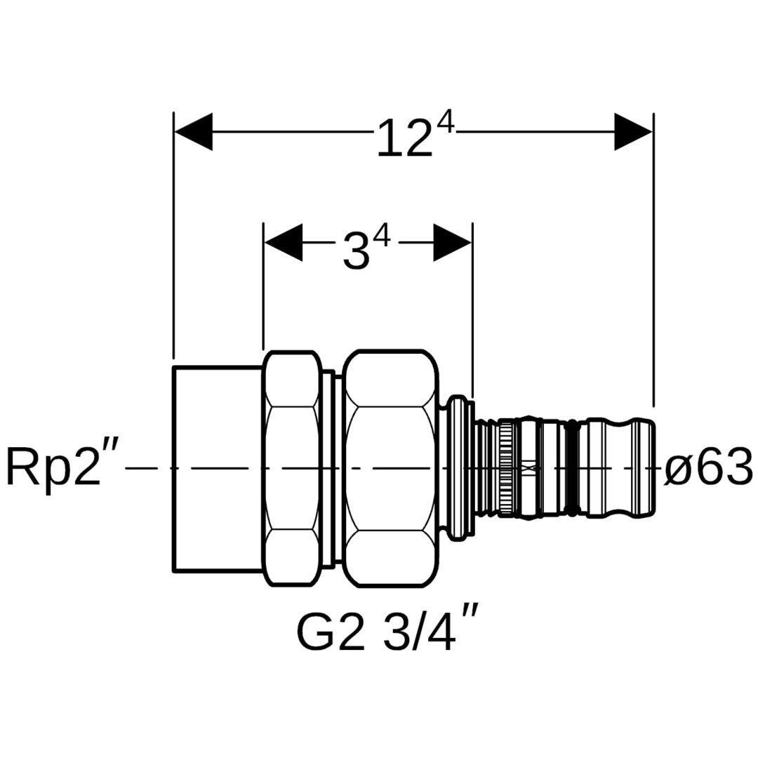 Geberit Übergangsverschraubung Mepla Ø 63 mm x Rp 2, mit IG, Rotguss