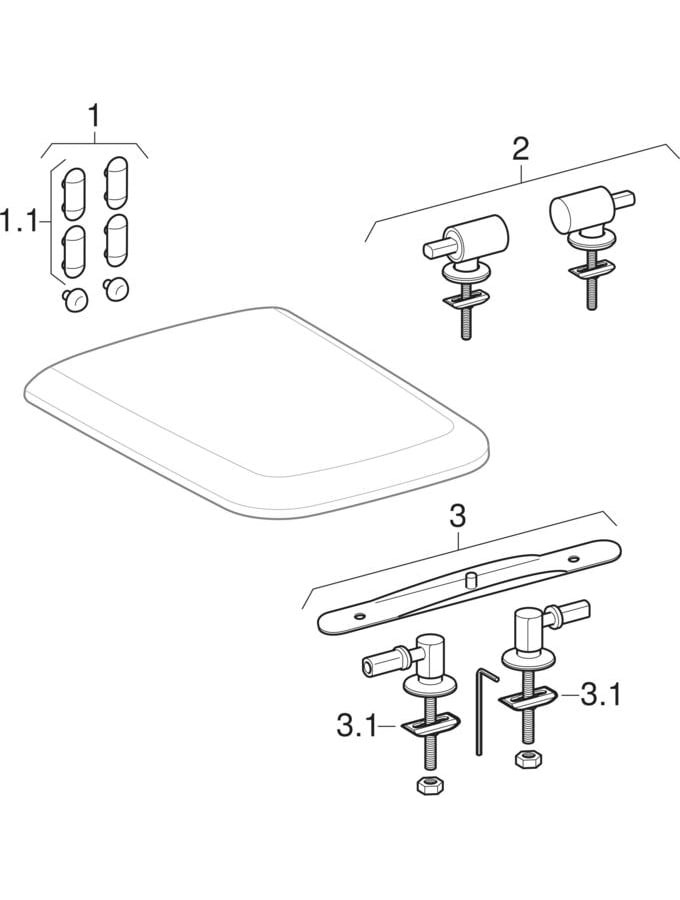 | Scharnierfussbefestigung am Sitz mit | in den Deckel gesteckte Stifte |
