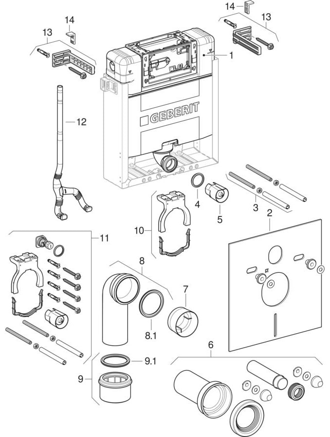 für gemauerte Wände, zum Einbau in teilhohe Vorwandinstallationen, für Wand-WCs mit Anschlussmaßen nach DIN EN 33:2011-11, für 2-Mengen-Spülung, Montagerahmen pulverbeschichtet-mit 4x Befestigungswinkeln, Montagetiefe verstellbar 12-20,5 cm, Anschlussbogen werkzeuglos montierbar, Befestigung Anschlussbogen werkzeuglos von vorne montierbar, UP-Spülkasten mit Betätigung von oben oder vorne, schwitzwassergedämmt, bei Werkseinstellung sofortiges Nachspülen möglich, Montage- und Instandhaltungsarbeiten am UP-Spülkasten werkzeuglos, Wasseranschluss seitlich links oder hinten links, Bauschutz für Serviceöffnung schützt vor Feuchtigkeit und Schmutz, Bauschutz für Serviceöffnung ablängbar, ausgerüstet mit Leerrohr für Wasserzuleitung zum Anschluss von AquaClean Dusch-WCs, mit Befestigungsmöglichkeit für Elektroanschluss, bestehend aus Wasseranschluss R 1/2, MeplaFix-fähig, mit integriertem Eckventil und Handrad, Bauschutz für Serviceöffnung, Anschlussset für WC-Ø 90 mm, Anschlussbogen aus PE-HD-Ø 90 mm, Übergangsmuffe aus PE-HD-Ø 90/110 mm, 2x Schutzstopfen, Schallschutzset, 2x Gewindestangen M12 und Befestigungsmaterial