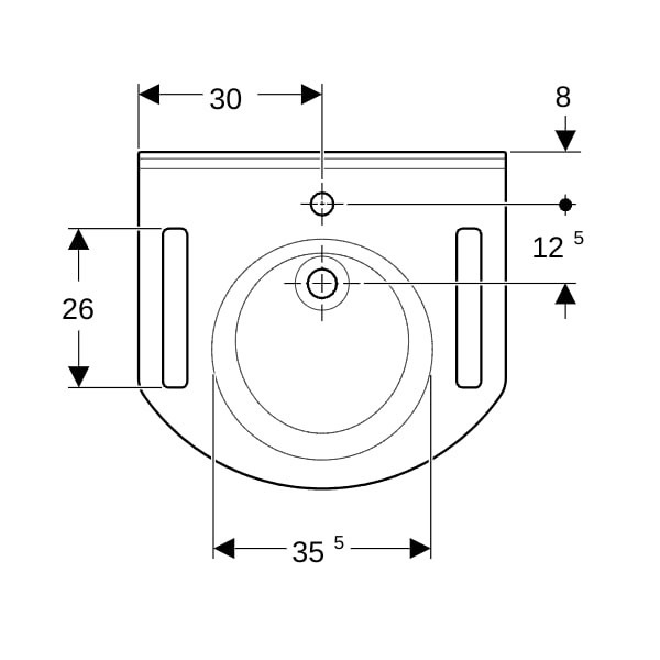 Geberit Waschtisch Publica 60 x 55 cm, ohne Hahnloch, ohne Überlauf, mit Ausschnitten, barrierefrei, demenzgerecht, weiß-alpin