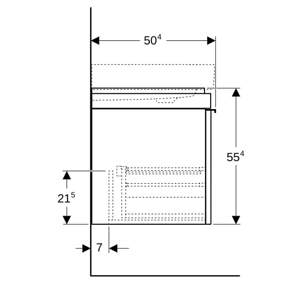 Schublade Glas glänzend, Korpus Melamin Holzstruktur, wandhängend, Öffnen durch Griff, Schublade mit Selbsteinzug, mit Füßen ausstattbar, Front aus Glas, Schubladenrahmen aus Metall, vormontiert, mit Befestigungsmaterial