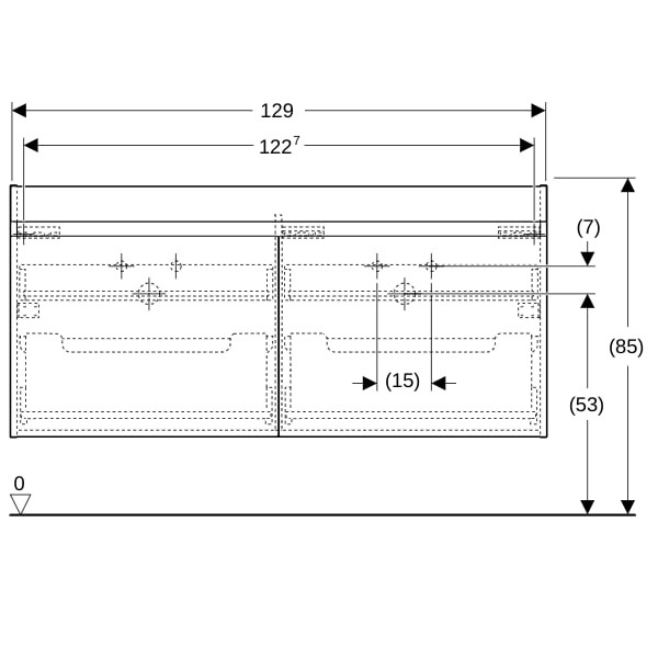 Geberit Waschtisch-Unterschrank Renova Plan 129 x 60,5 x 47,3 cm, nussbaum hell, für Möbelwaschtisch, mit Schublade