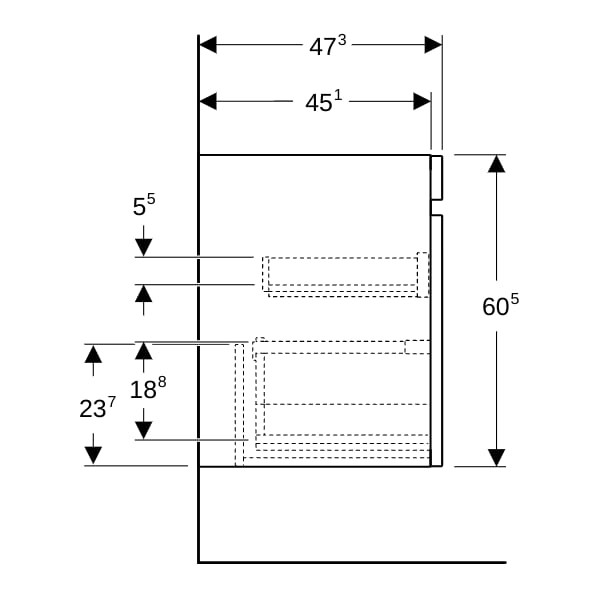 Geberit Waschtisch-Unterschrank Renova Plan 53,8 x 60,5 x 47,3 cm, weiß, für Möbelwaschtisch, mit Schublade GE501935011