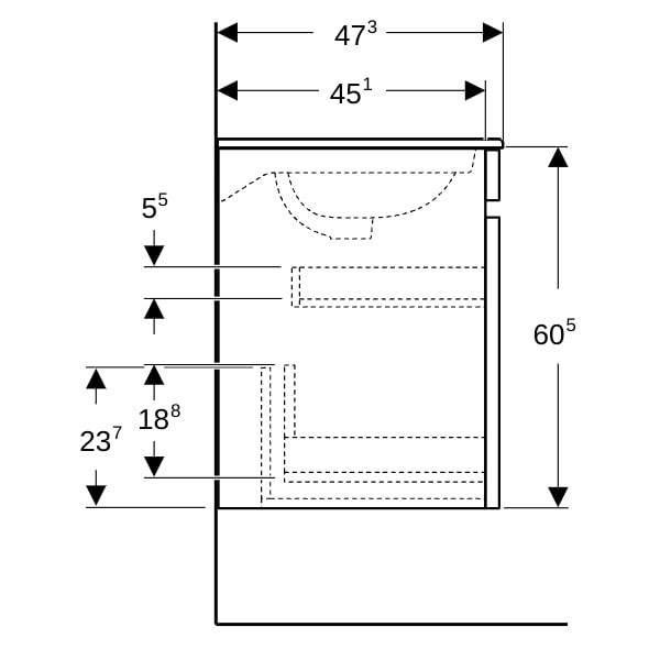 Geberit Waschtisch-Unterschrank Renova Plan 53,8 x 60,5 x 47,3 cm, weiß, für Möbelwaschtisch, mit Schublade GE501935011