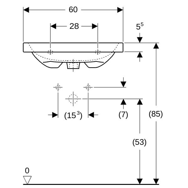 Geberit Waschtisch iCon Light 60x42cm, Hahnloch mittig, mit Überlauf, weiß