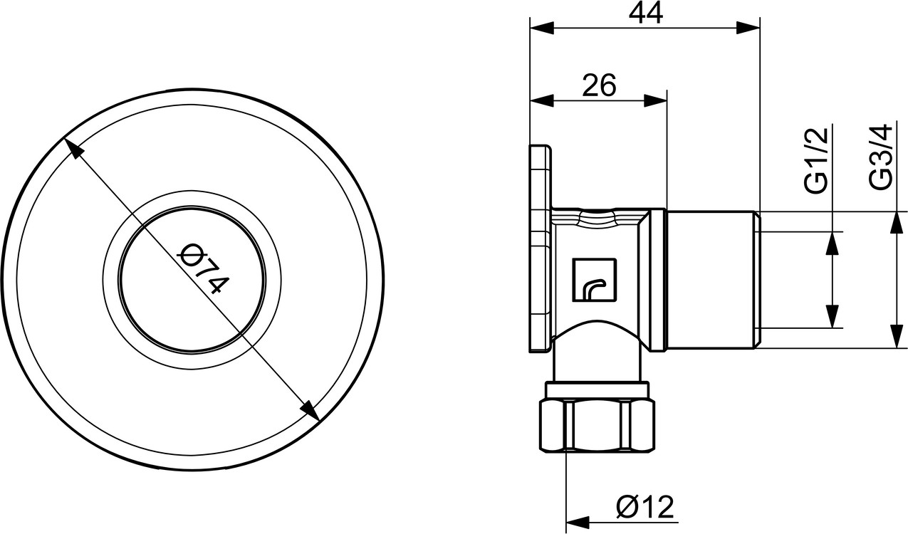HA Winkelkupplung mit Absperrventil, G3/4(1/2)-D12 Oras Group Chrom