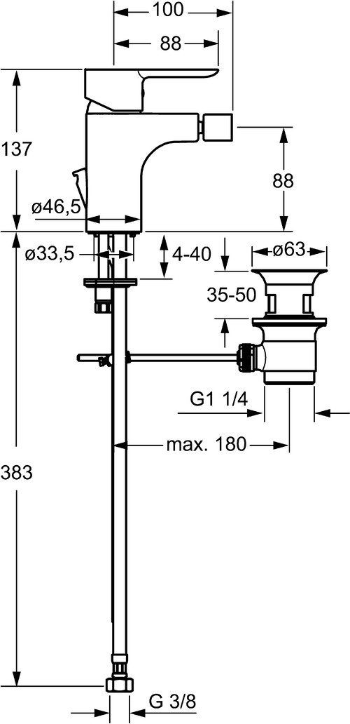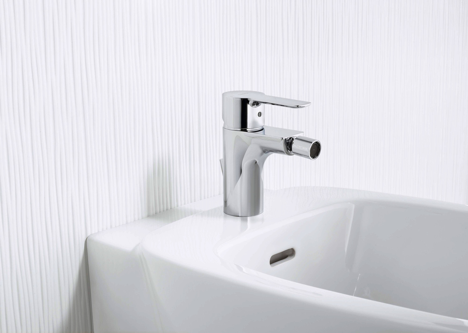 HANSA Bidet-Einhebelmischer HANSALIGNA Hebel oben, mit Ablaufgarnitur, Ausladung 100mm, chrom