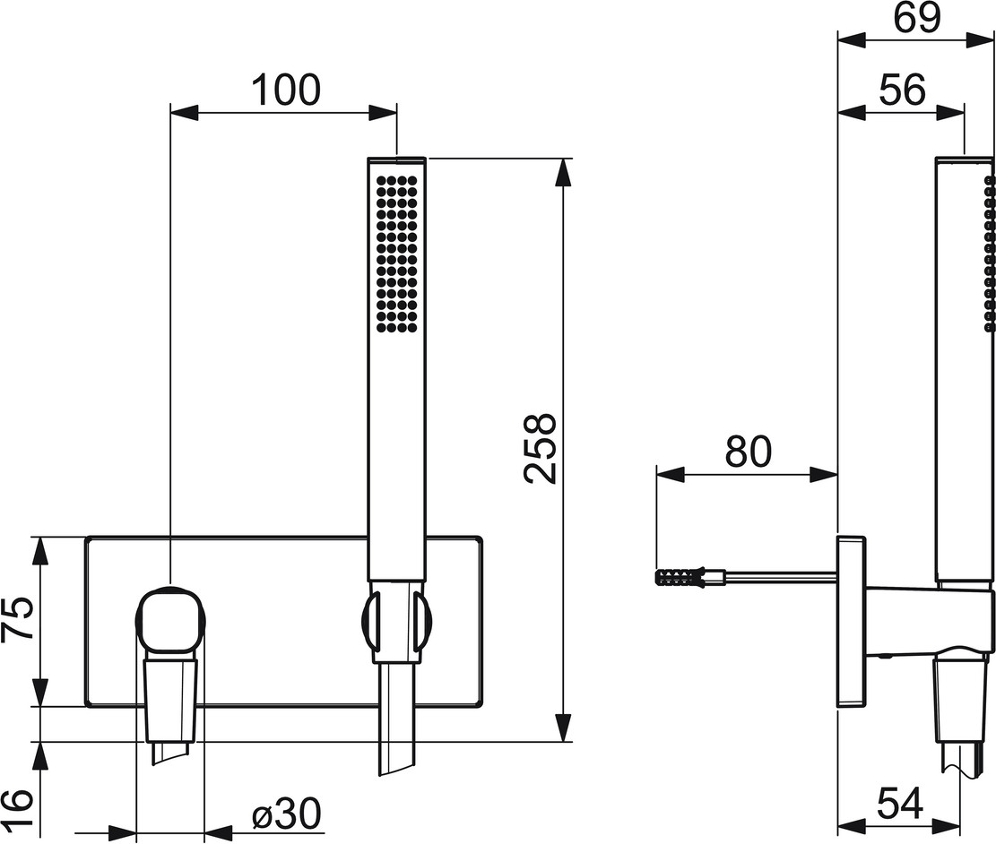 passend zu HANSAMATRIX Einbaukörper, Heißwasserversorgung max. 65°C, Arbeitsdruck 0,5-5 bar, Durchfluss bei 3 bar (mit Regler) 13,2 l/min, Anschlussgröße G1/2, Handbrausengröße Ø 25 x 70 mm, Sicherungseinrichtung (EN1717) EB, Material Messing, Brausehalter, Brauseschlauch (1250 mm), Wandanschlussbogen, Anti-Kalk-Technik, Rückfussverhinderer Rosette eckig