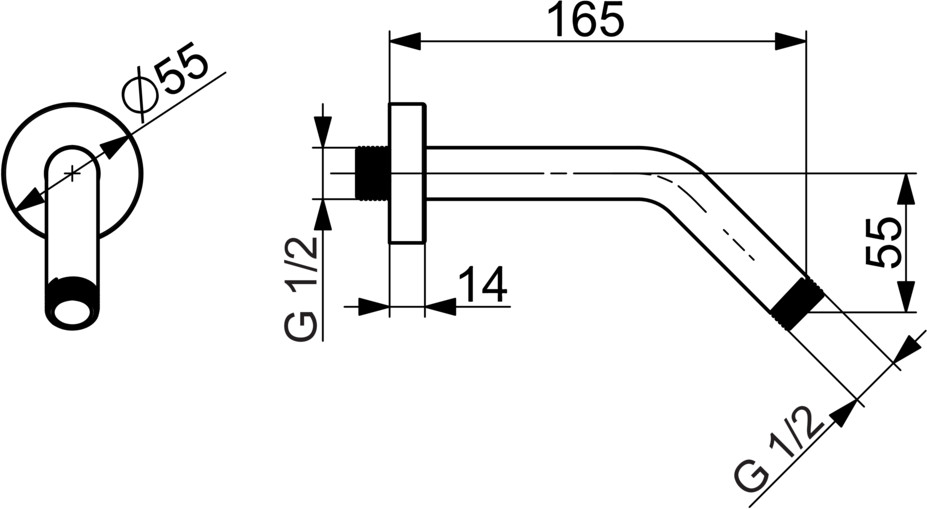 HANSA Brausearm HANSAJET G 1/2xG 1/2,Wandmontage, Ausladung 165mm, chrom