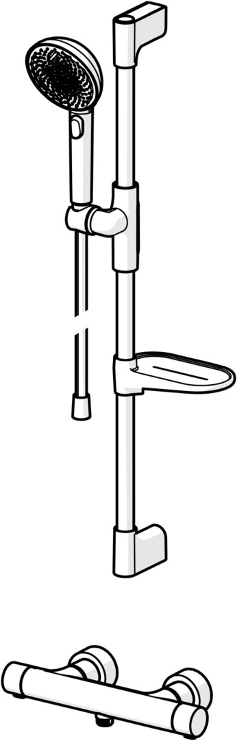 Heißwasserversorgung max. 65°C, Arbeitsdruck 1-10 bar, Spar-Durchfluss bei 3 bar 10,2 l/min, Durchfluss bei 3 bar 10,8 l/min, Anschlussgröße G1/2, Handbrausengröße Ø 110 mm, Installationsabstand 150 ± 15 mm, Länge (mm) 770 mm, Sicherungseinrichtung (EN1717) EB, Geräuschklasse I (ISO 3822), Material Messing/Verbundwerkstoff, Handbrause, Brausestange, verstellbare Brausestangehalterung, Seifenschale, Brauseschlauch (1750 mm), variable Montagemöglichkeit, Anti-Kalk-Technik, Twist guard, Verdrehschutz für Brauseschlauch, S-Anschlüsse, Abdeckung(en), Schalldämpfer, Oberteil mit keramischen Dichtscheiben zur Wassermengeneinstellung für einen Abgang, Thermostatkartusche zur Temperaturreglung, Rückfussverhinderer, Schmutzflter, Armaturenkörper aus entzinkungsbeständigem Messing (DZR), kürzbar, Schlauchdurchführung, drehbar, Sicherheitssperre gegen Verbrühen bei 38°C, mehr Sicherheit durch minimales Erwärmen des Armaturengehäuses Temperatureinstellgriff, Durchfusseinstellgriff, Hebel mit W+K-Kennzeichnung, Eco-Funktion für die Wassermenge, 3-strahlig
