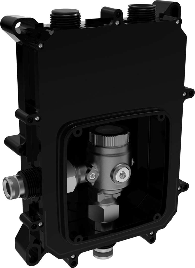 DN 15, Durchflussmenge 26,4 l/min, gemessen bei 3 bar Fließdruck, Heißwasserversorgung max. 70 °C, Einbautiefe 58-88 mm, eigensicher gegen Rückfließen im häuslichen Gebrauch (nach DIN EN 1717), direkter Anschluss Außengewinde mit integrierter Vorabsperrung G 1/2, Schmutzfilter, Dichtmanschette für Trockenausbau, Montagebox, Bauschutzkappe