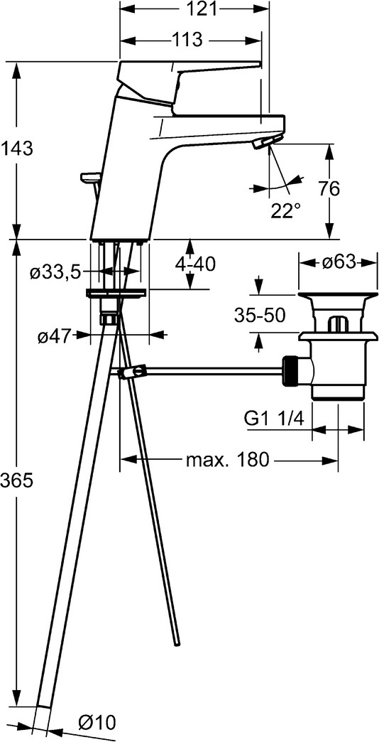 DN 15, Heißwasserversorgung max. 80°C, Arbeitsdruck 0,5-10 bar, Durchfluss bei 3 bar (mit Regler) 6 l/min, Anschlussgröße Ø 10 mm, Ausladung 121 mm, Sicherungseinrichtung (EN1717) AA, Geräuschklasse I (ISO 3822), Material Messing, Ø 3,5 classic Steuerpatrone mit keramischen Dichtscheiben zur Wassermengen- und Temperatureinstellung, Ablaufgarnitur mit Zugstange, Anschluss über Kupferrohre, Temperaturbegrenzer, Heißwassersperre einstellbar (im Lieferumfang enthalten), konstante Durchfussleistung unabhängig vom Fließdruck, Armaturenkörper aus entzinkungsbeständigem Messing (DZR), Rapid-Montagesystem, Hebel mit W+K-Kennzeichnung, Einhandbedienhebel/Griff, feststehender Auslauf