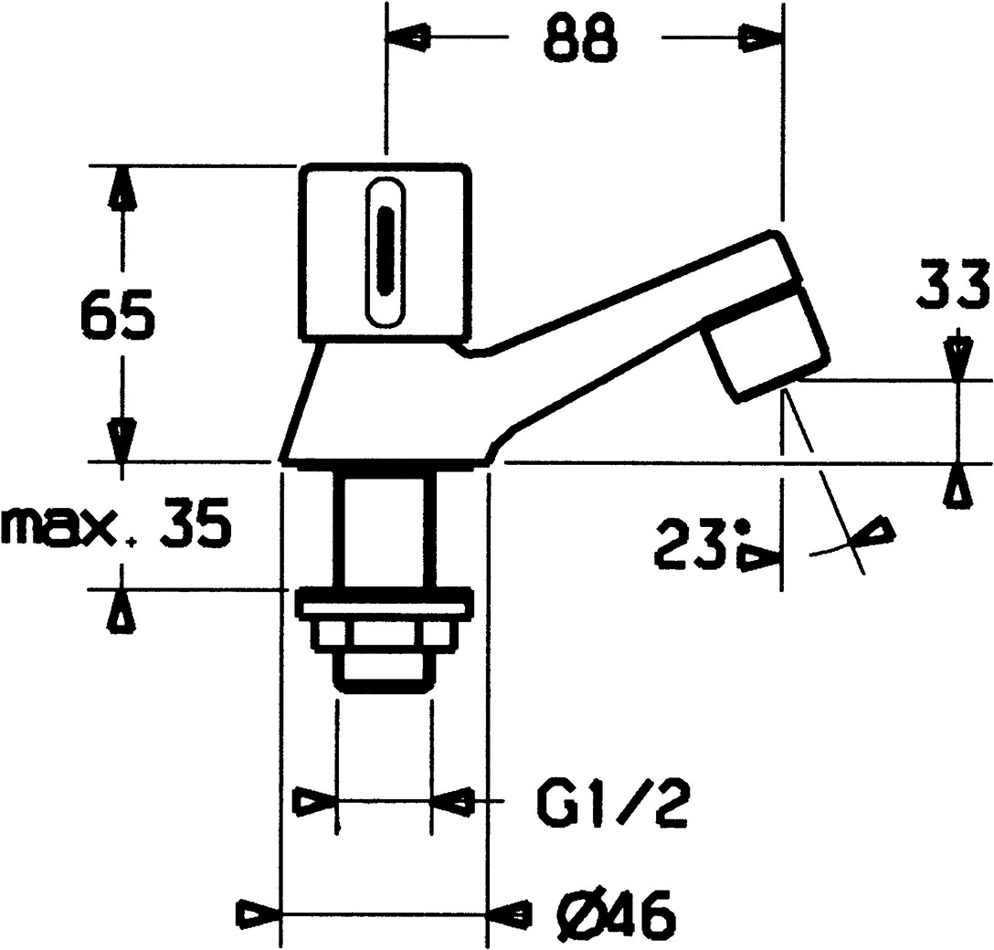 DN 15, Durchflussmenge 12 l/min, gemessen bei 3 bar Fließdruck, Heißwasserversorgung max. 80 °C, Armaturenkörper aus entzinkungsbeständigem Messing (DZR), 1 Zuleitung, für Kalt- oder Mischwasser, G 1/2, feststehender Auslauf