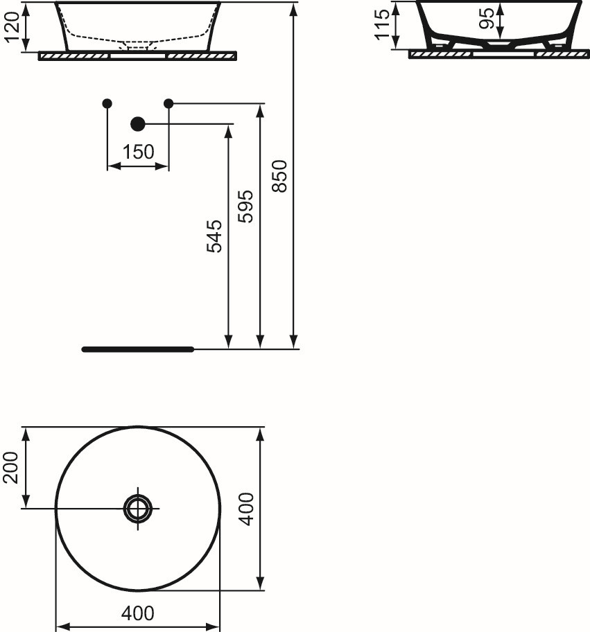 Ideal-Standard Aufsatzschale Ipalyss 40x40x12cm, ohne Überlauf/Hahnloch, weiß ISE139801