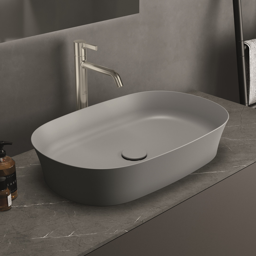 Ideal-Standard Aufsatzschale Ipalyss 60x38x12cm, ohne Überlauf/Hahnloch, betongrau
