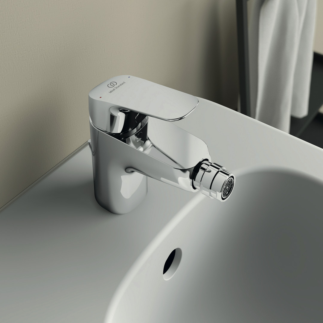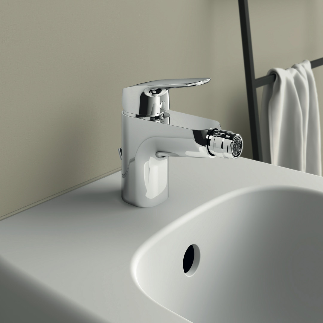 Ideal-Standard Bidet-Einhebelmischer CeraFlex mit Kunststoff-Ablaufgarnitur, Ausladung 114mm, chrom