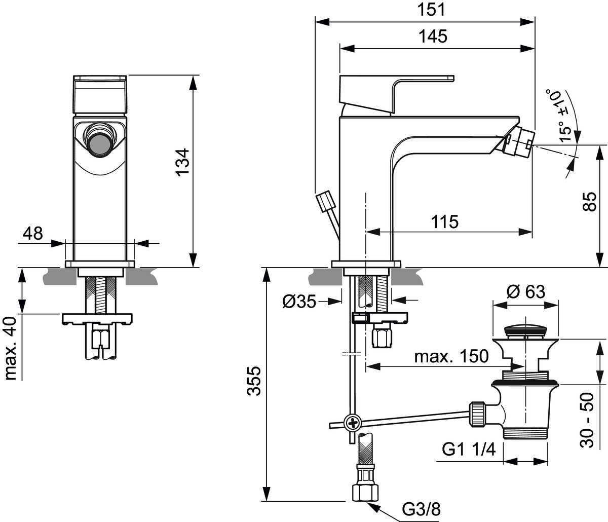 Ideal-Standard Bidet-Einhebelmischer Edge Slim mit Ablaufgarnitur, Ausladung 115 mm, verchromt